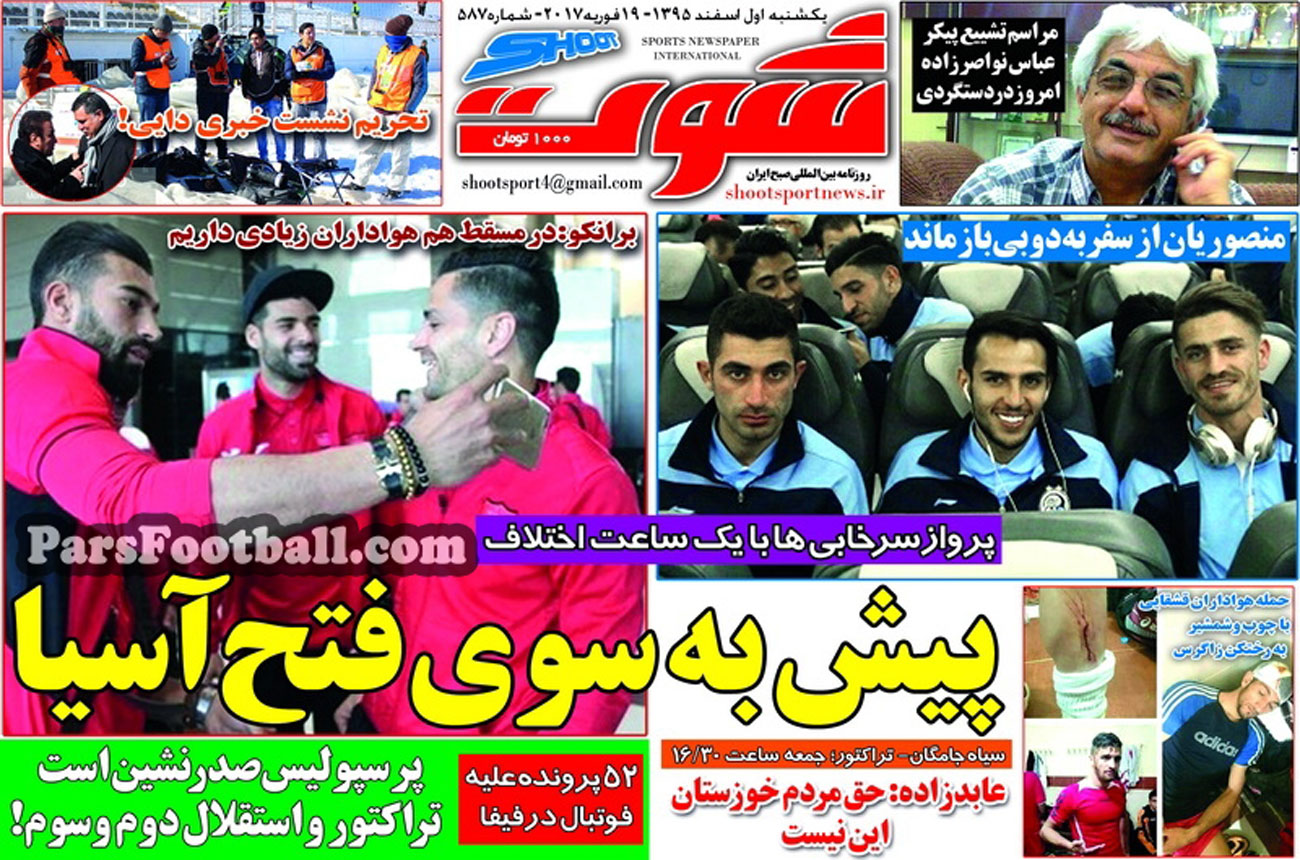 روزنامه شوت ، یکشنبه ۱ اسفند ؛ برانکو : در مسقط هم هواداران زیادی داریم