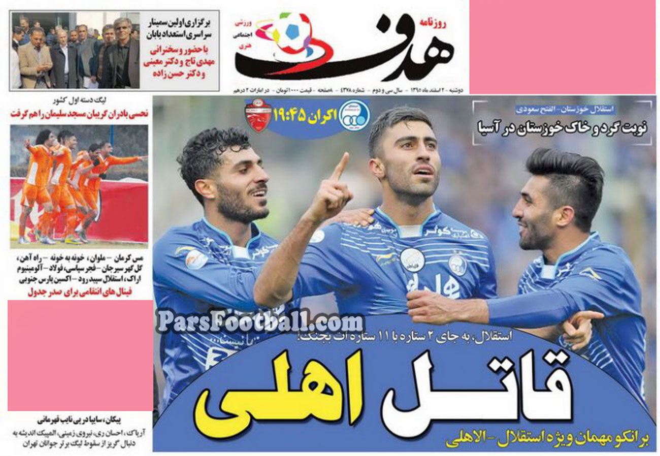 گیشه اخبار داخلی پارس فوتبال همه روزه به بررسی نشریات ورزشی می پردازد. به بررسی روزنامه هدف می پردازیم.