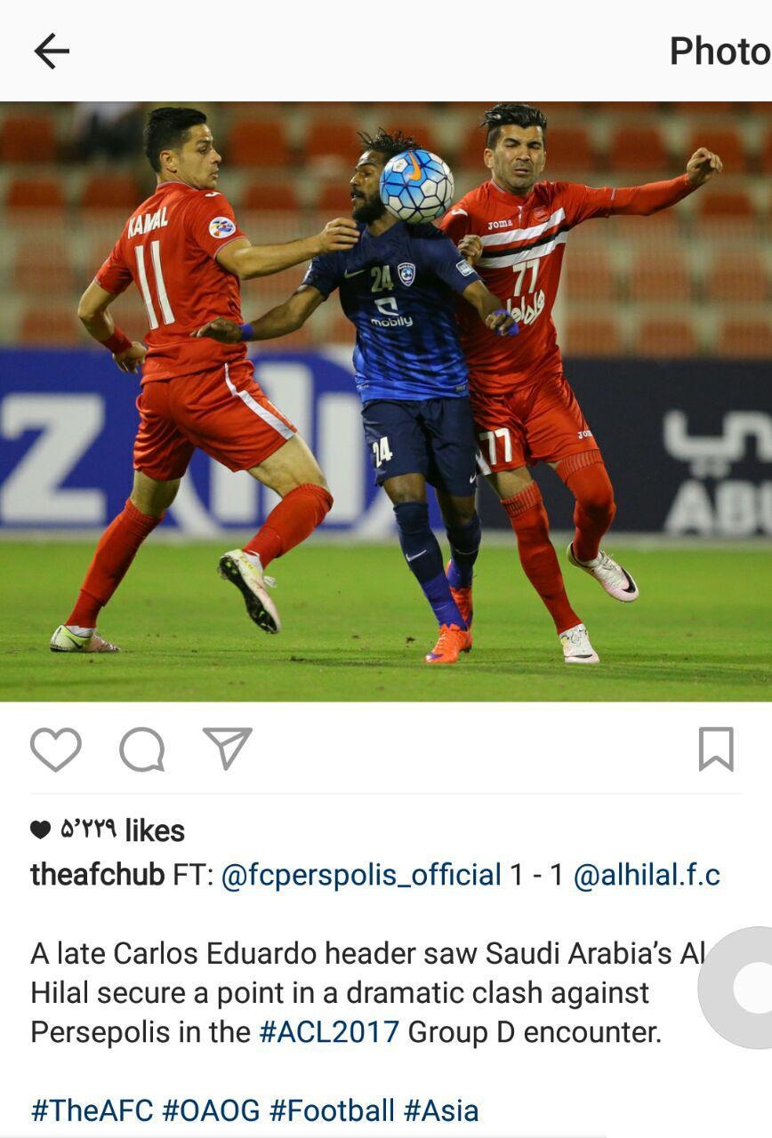 کنفدراسیون فوتبال آسیا در اینستاگرام بلافاصله پس از بازی تیم پرسپولیس و الهلال واکنش نشان داد.
