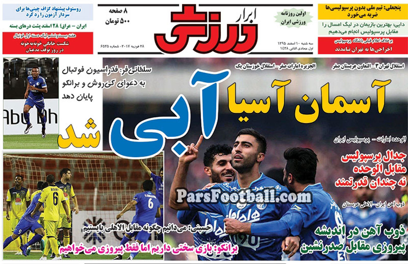 عناوین روزنامه ابرار ورزشی در روز سه شنبه ۱۰ اسفند به شرح زیر است :