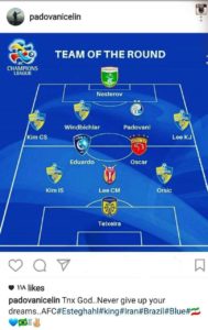 پست اینستاگرام پادوانی در مورد حضورش درتیم منتخب لیگ قهرمانان آسیا