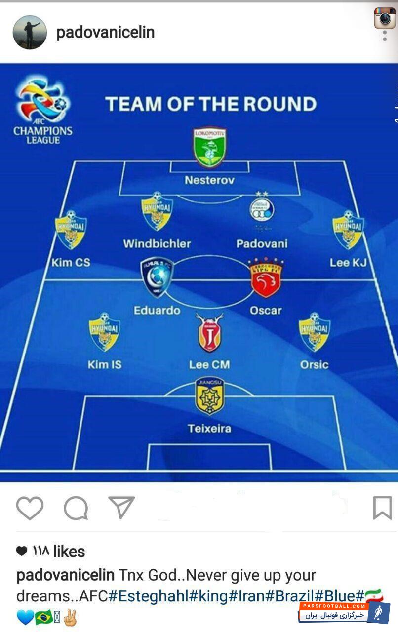 پست اینستاگرام پادوانی در مورد حضورش درتیم منتخب لیگ قهرمانان آسیا