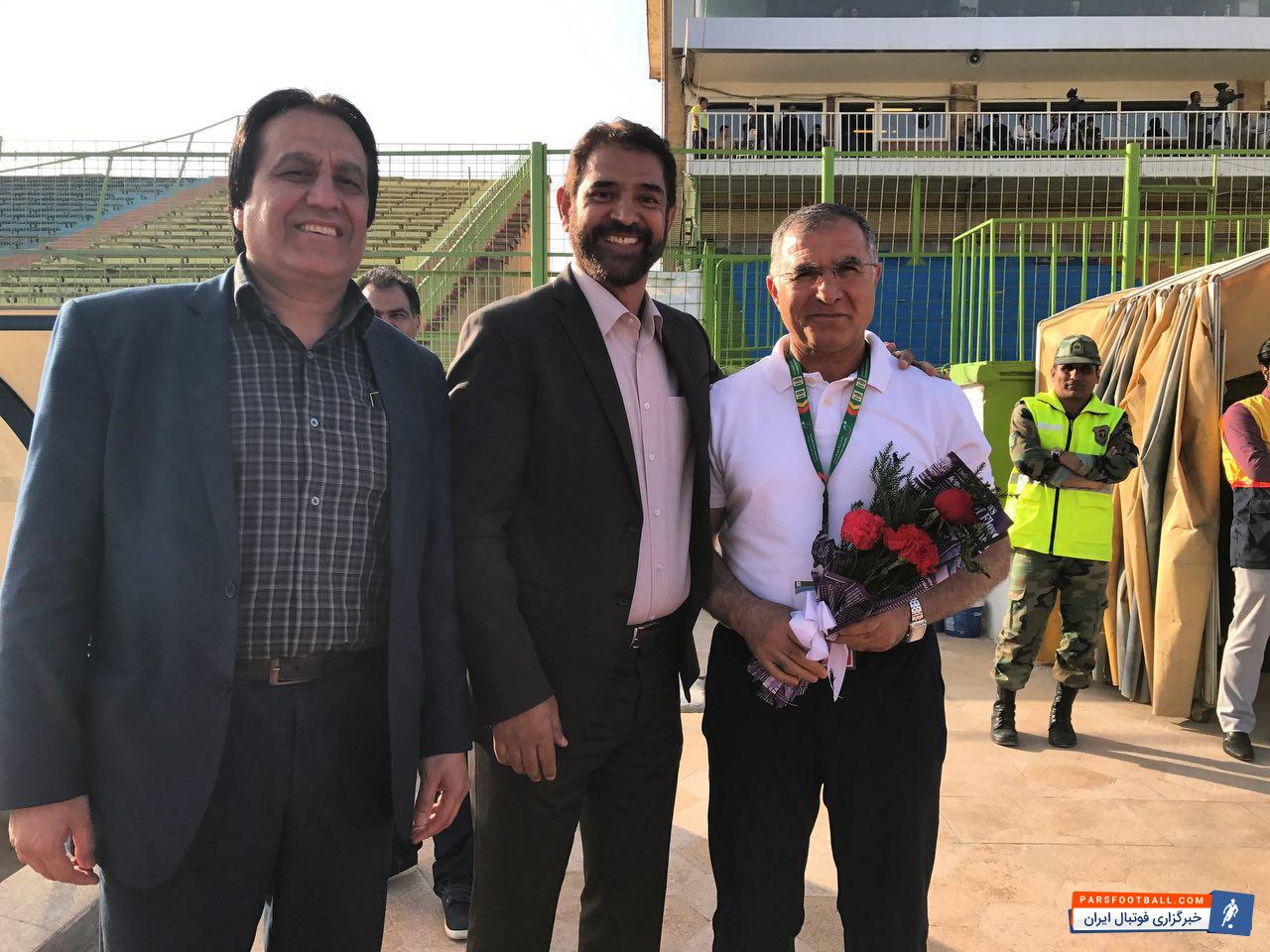 تصویری از عکس جالب فیروز کریمی کنار سرمربی حریف