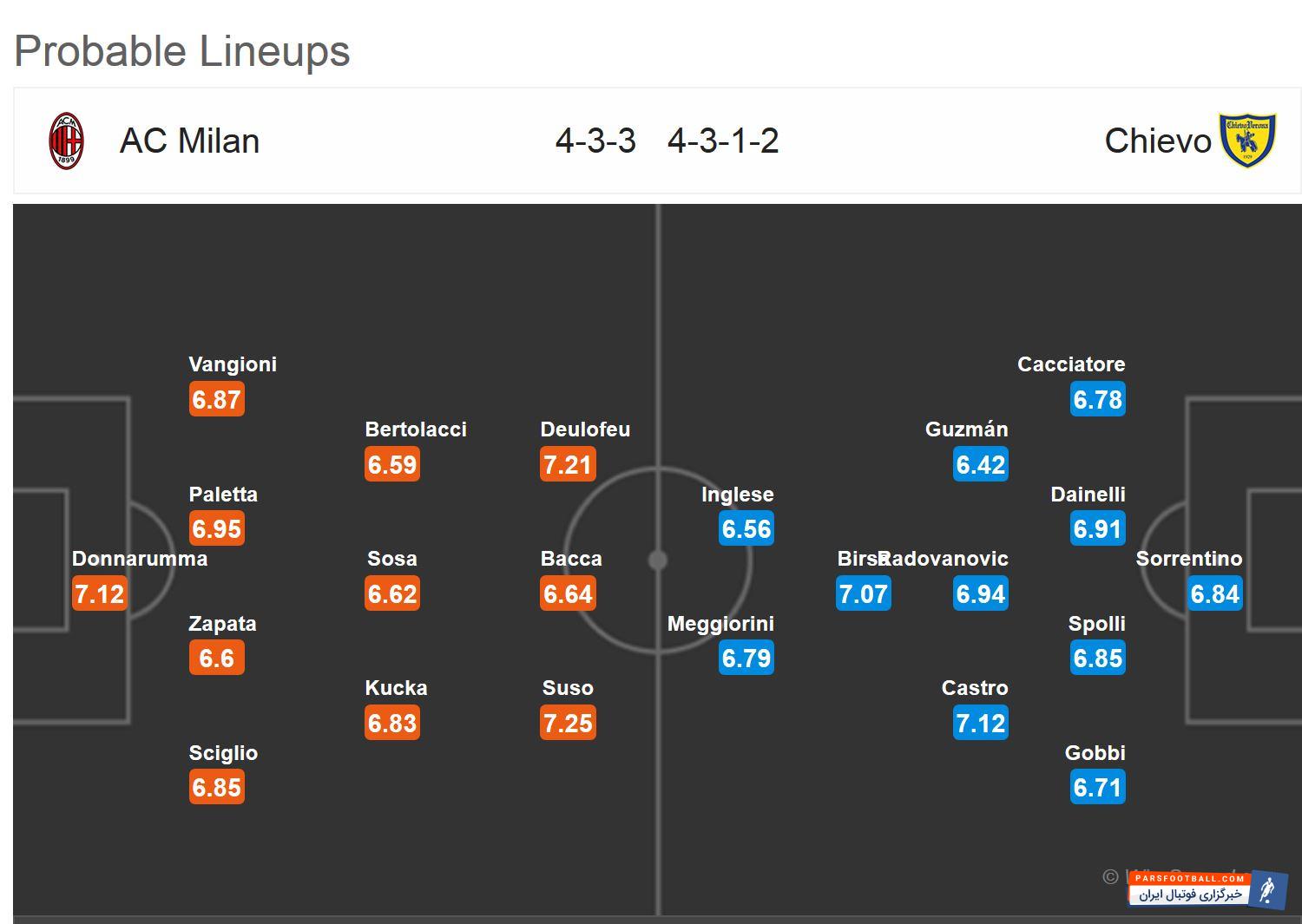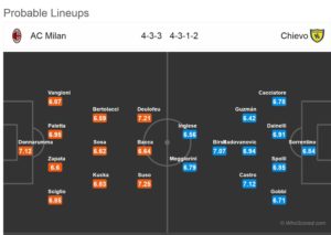 کیه وو نیز شرایط متوسطی در جدول دارد و با ۳۵ امتیاز در رده یازدهم قرار گرفته است. آنها امیدی به کسب سهمیه لیگ اروپا نخواهند داشت و احتمالا هدفشان تا پایان فصل حفظ جایگاه فعلی خواهد بود. در ۵ تقابل اخیر دو تیم، ۳ پیروزی برای میلان و ۲ تساوی به ثبت رسیده است و باید دید که آیا میلان میتواند به روند خوب خود مقابل کیه وو ادامه دهد یا نه. مونتولیوو و بوناونتورا به علت مصدومیت قادر به همراهی میلان نیستند و حضور آباته و رومانولی نیز در هاله ای از ابهام قرار دارد.