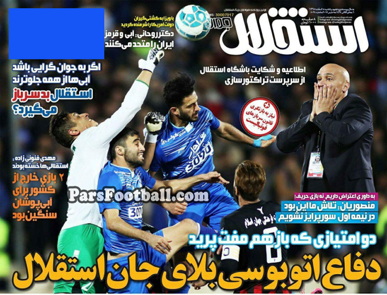 روزنامه استقلال جوان ، یکشنبه ۱۵ اسفند ؛ دفاع اتوبوسی بلای جان استقلال