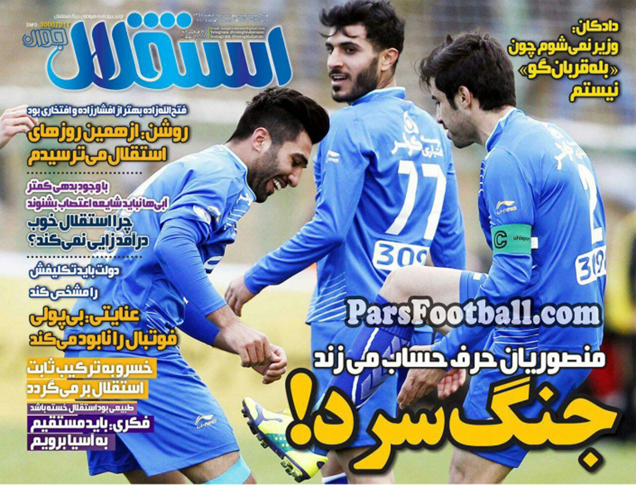روزنامه استقلال جوان ، سهشنبه ۱۷ اسفند ؛ منصوریان حرف حساب میزند