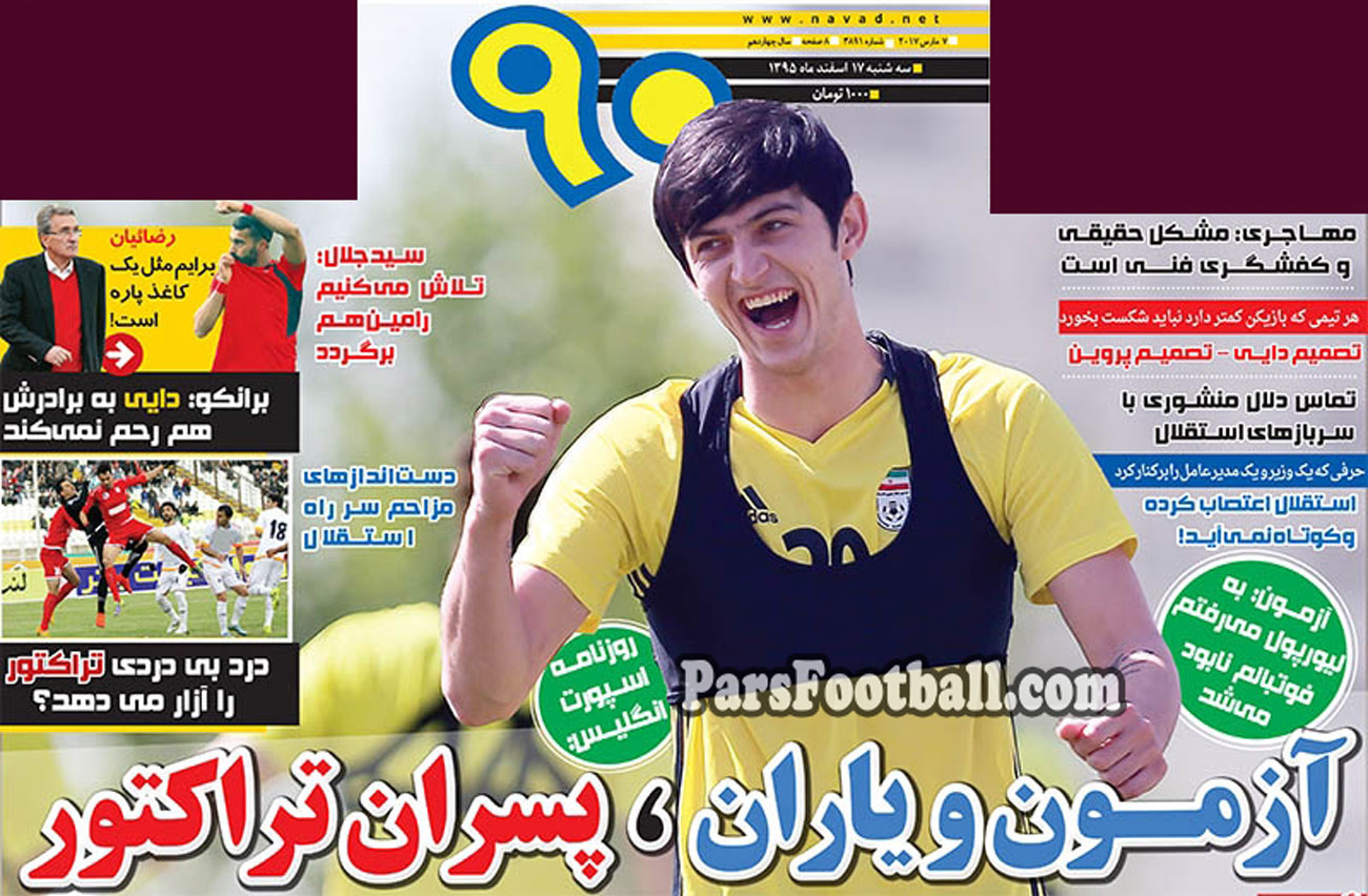 روزنامه نود ، سه‌شنبه ۱۷ اسفند ؛ تماس دلال منشوری با سربازهای استقلال