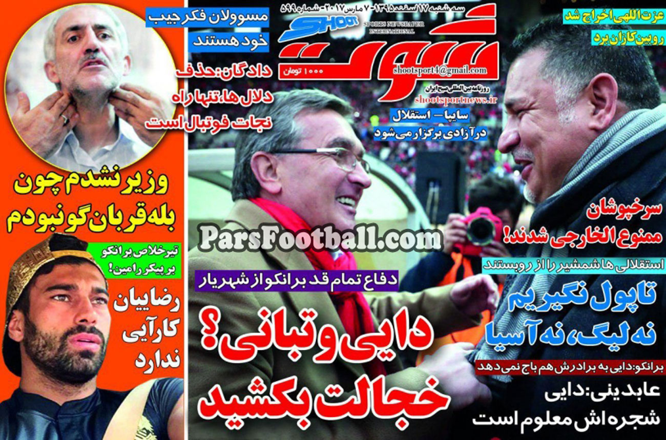عناوین روزنامه شوت در روز سهشنبه ۱۷ اسفند به شرح زیر است :