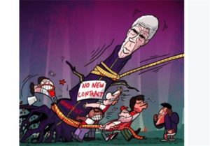 در این میان خنده الکسیس سانچس که پس از به ثمر رسیدن گل پنجم بایرن به تصویر کشیده شد، هم سوژه طنز و کایکاتور شده است.