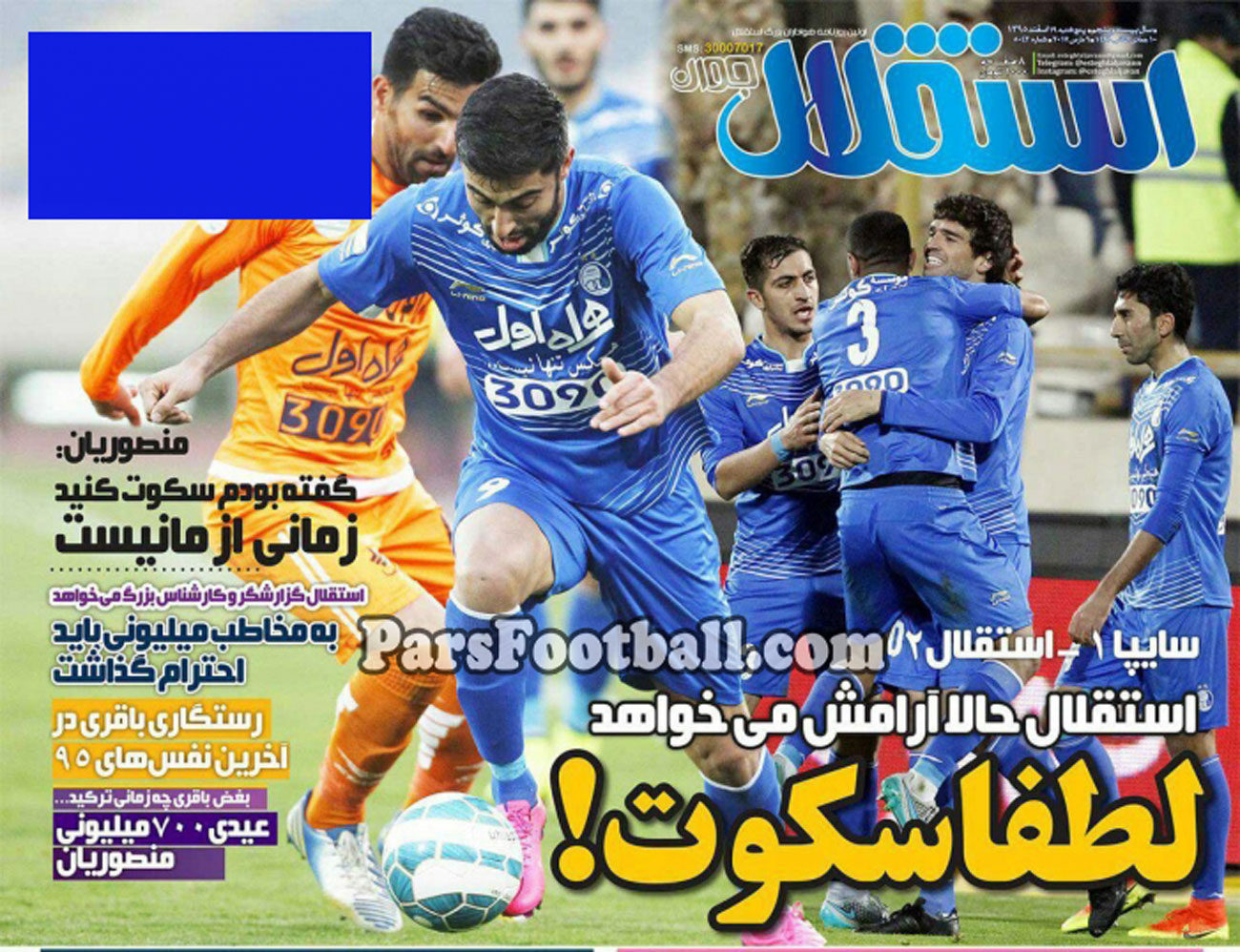 روزنامه استقلال جوان ، پنجشنبه ۱۹ اسفند ؛ عیدی ۷۰۰ میلیونی منصوریان