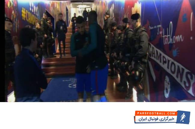 چنانچه در تصویر زیر مشاهده می شود، حضور تعداد زیادی نیروی ویژه حفاظت در تونل و کنار بازیکنان بارسا در نوع خود تعجب برانگیز بود. علت حضور نظامی ها در تونل ورزشگاه نوکمپ و به نوعی اسکورت ستاره های بارسا از مسائل جالب بازی امشب بود.