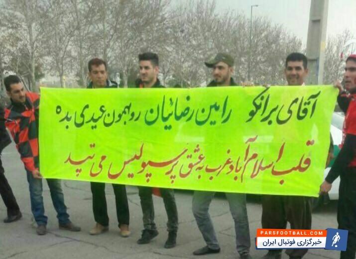 عده ای هواداران پرسپولیس در اسلام آباد غرب، با پلاکاردی از برانکو خواستند تا رشاییان را به عنوان عیدی به هواداران این تیم بدهد.