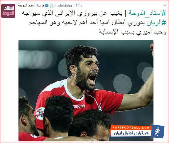 هفته سوم رقابت های لیگ قهرمانان آسیا در حالی از فرداشب آغاز می شود که در یکی از حساس ترین بازی های این هفته الریان در دوحه میزبان پرسپولیس خواهد بود. جدالی که برای هر دو طرف به خصوص قهرمان قطری ها در راه زنده ماندن امیدها برای صعود از اهمیت خاصی برخوردار است در آستانه این جدال حساس روزنامه استاد الدوحه در خبری عجیب از غیبت امیری مهاجم ملی پوش و کلیدی پرسپولیس در این بازی خبر داد و نوشت: «پرسپولیس در حالی راهی دوحه می شود که برای بازی با الریان نمی تواند از وحید امیری مهاجم ملی پوش و کلیدی خود بهره ببرد».