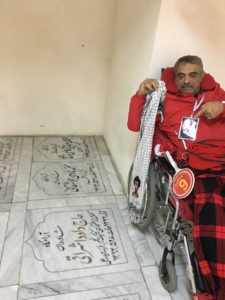 موسی سلامت جانباز پرسپولیسی بر سر مزار پدر یاسر اشراقی ، خبرنگار صدا و سیما