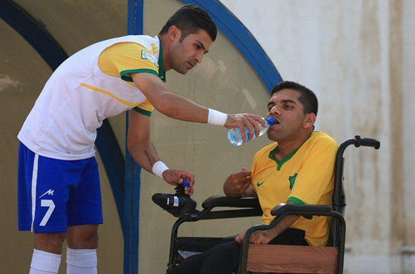 محمدرضا پورمحمد هافبک تیم نفت آبادان روز گذشته در اقدایم جالب و ارزنده به یکی از هواداران معلول با تعصب تیم صنعت نفت که همیشه در کنار نیمکت این تیم حاضر و به حمایت از صنعت نفت مشغول است، آب رساند تا این هوادار متعصب تشنه نماند.