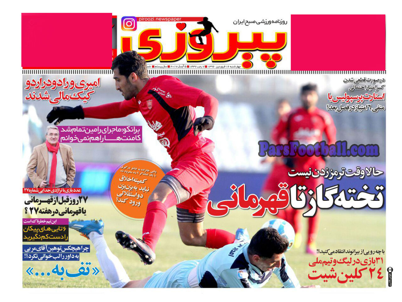 روزنامه پیروزی ، چهارشنبه ۱۶ فروردین ؛ با چه رویی از بیرانوند انتقاد می کنید ؟