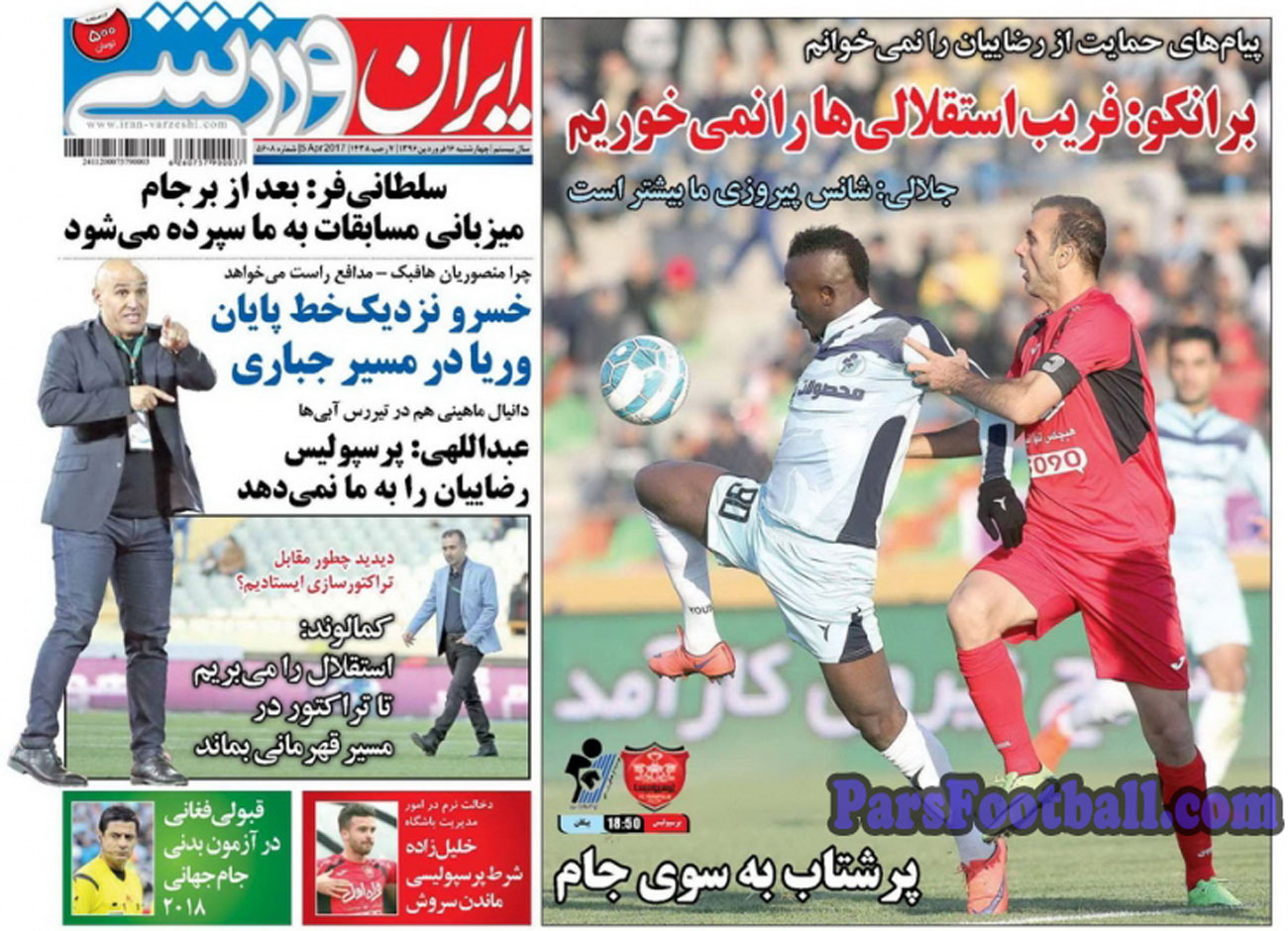 عناوین روزنامه ایران ورزشی در روز چهارشنبه ۱۶ فروردین به شرح زیر است :