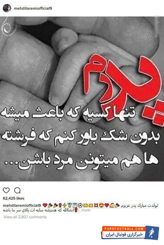 مهدی طارمی با انتشار پستی در صفحه اینستاگرام خود، تولد پدرش را تبریک گفت.