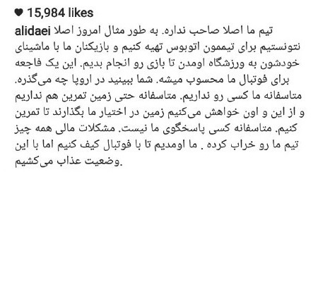 علی دایی سرمربی تیم فوتبال نفت تهران در صفحه اینستاگرام خود در خصوص نتایج این تیم توضیحاتی را ارائه کرد.