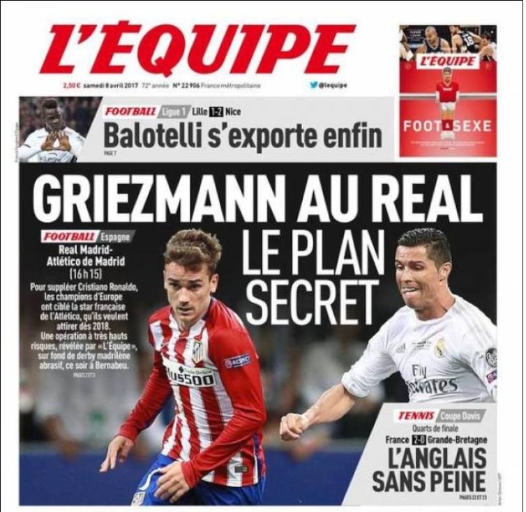 روزنامه اکیپ مدعی شد که باشگاه رئال مادرید برنامه مخفی برای جذب آنتوان گریزمان ، ستاره اتلتیکومادرید دارد.