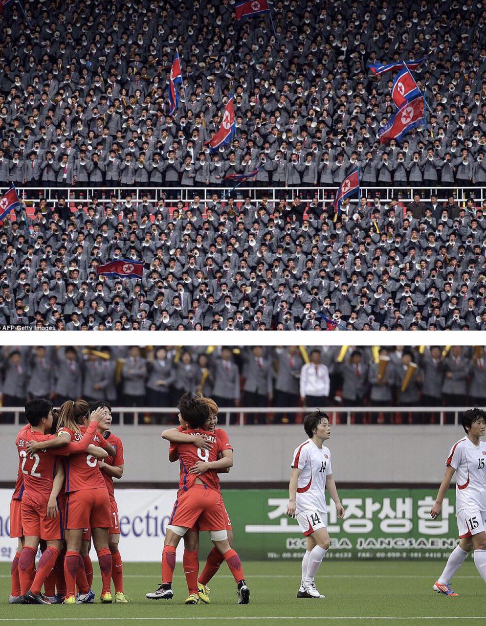 تصویری عجیب از فوتبال زنان کره شمالی و کره جنوبی