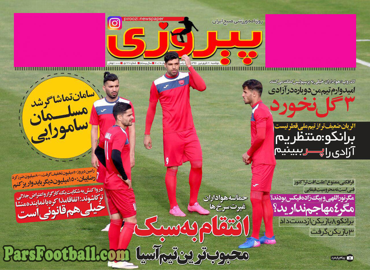 روزنامه پیروزی ، دوشنبه ۲۱ فروردین ؛ انتقام به سبک محبوب ترین تیم آسیا