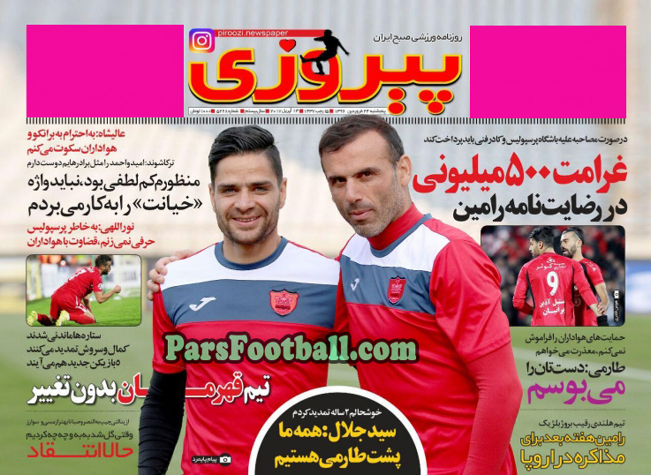 روزنامه پیروزی ، پنجشنبه ۲۴ فروردین ؛ غرامت ۵۰۰ میلیونی در رضایت نامه رامین