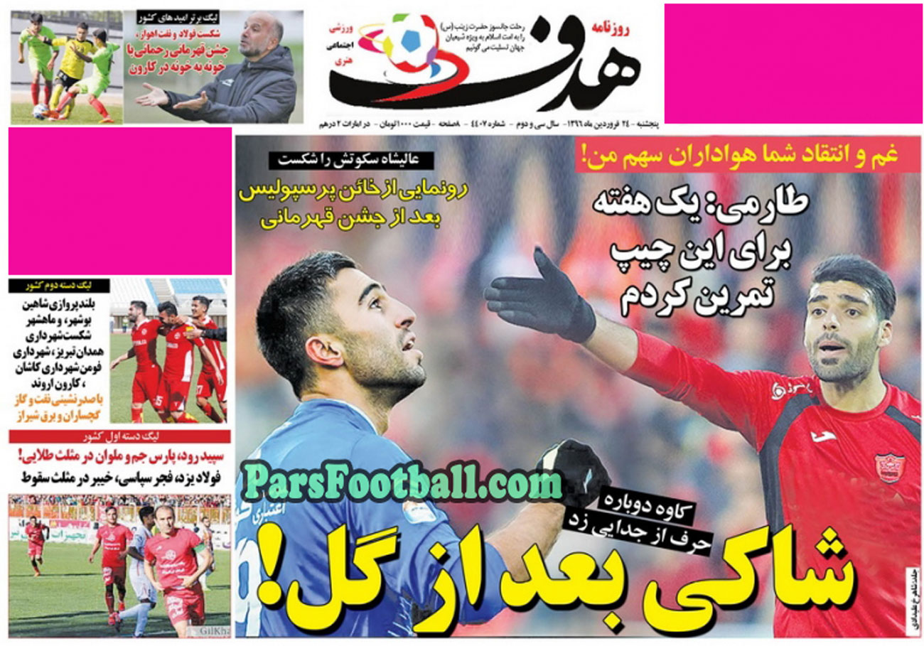 گیشه اخبار داخلی پارس فوتبال همه روزه به بررسی نشریات ورزشی می پردازد. به بررسی روزنامه هدف می پردازیم.