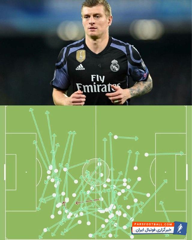 تونی کروس ستاره رئال مادرید و تصویری از پاس های درست وی در بازی با بایرن مونیخ در لیگ قهرمانان اروپا