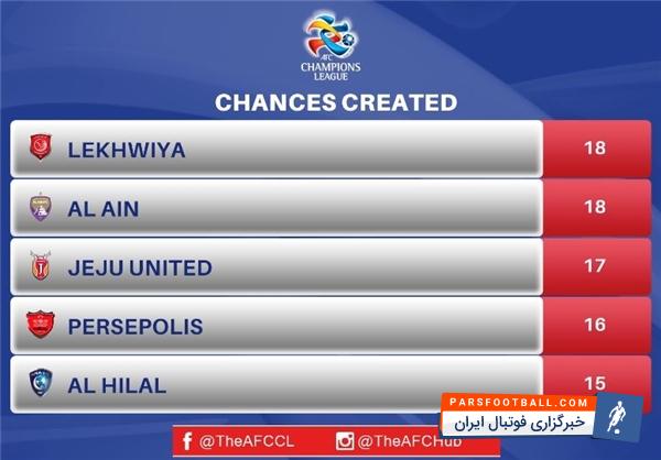 تیم لخویا و العین هر دو با ساختن ۱۸ موقعیت در صدر تیم هایی که بیشترین موقعیت را داشتند، قرار گرفت. پرسپولیس با ساختن ۱۶ موقعیت در رده چهارم این جدول قرار گرفت.