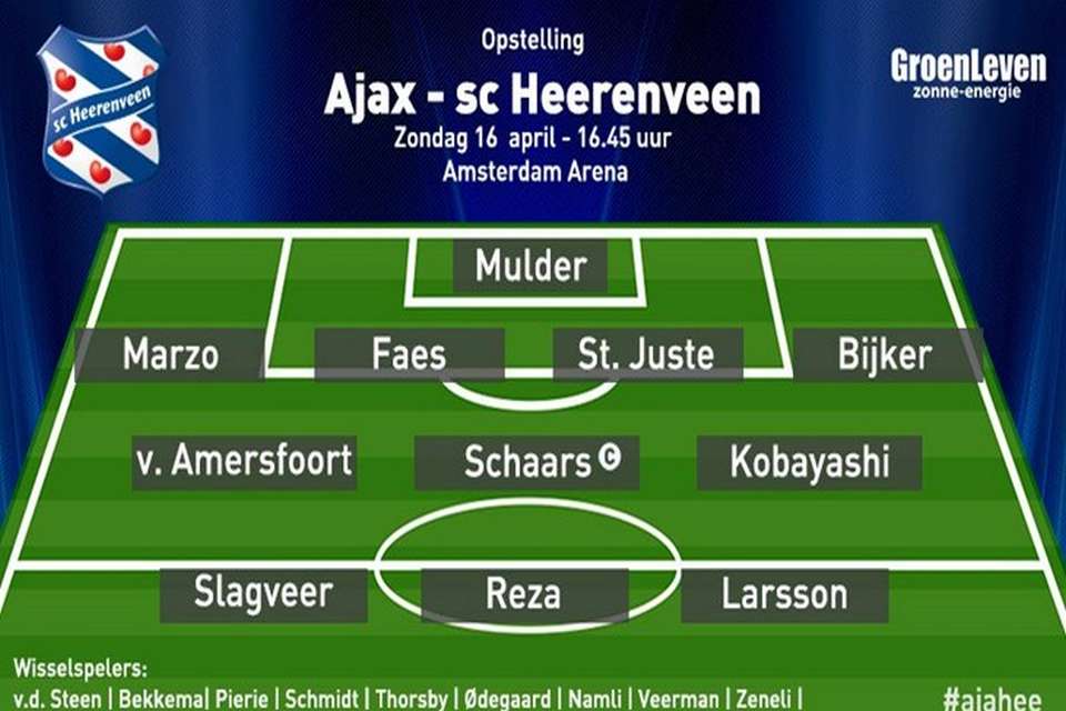 مهاجم گلزن ایرانی هیرنفین در ترکیب این تیم برابر آژاکس جای دارد.