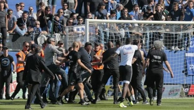 حمله هواداران باستیا به بازیکنان لیون در پیش از شروع دیدار این دو تیم، صحنه های عجیبی را در فرانسه خلق کرد.