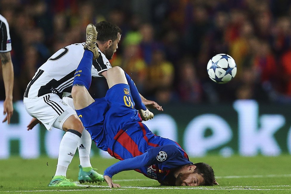 سقوط مسی روی زمین در شب سقوط بارسلونا مقابل یوونتوس