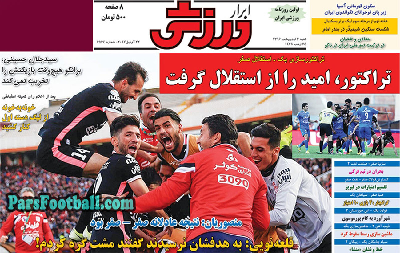روزنامه ابرار ورزشی ، شنبه ۲ اردیبهشت ؛ به هدفشان نرسیدند گفتند مشت گره کردم !