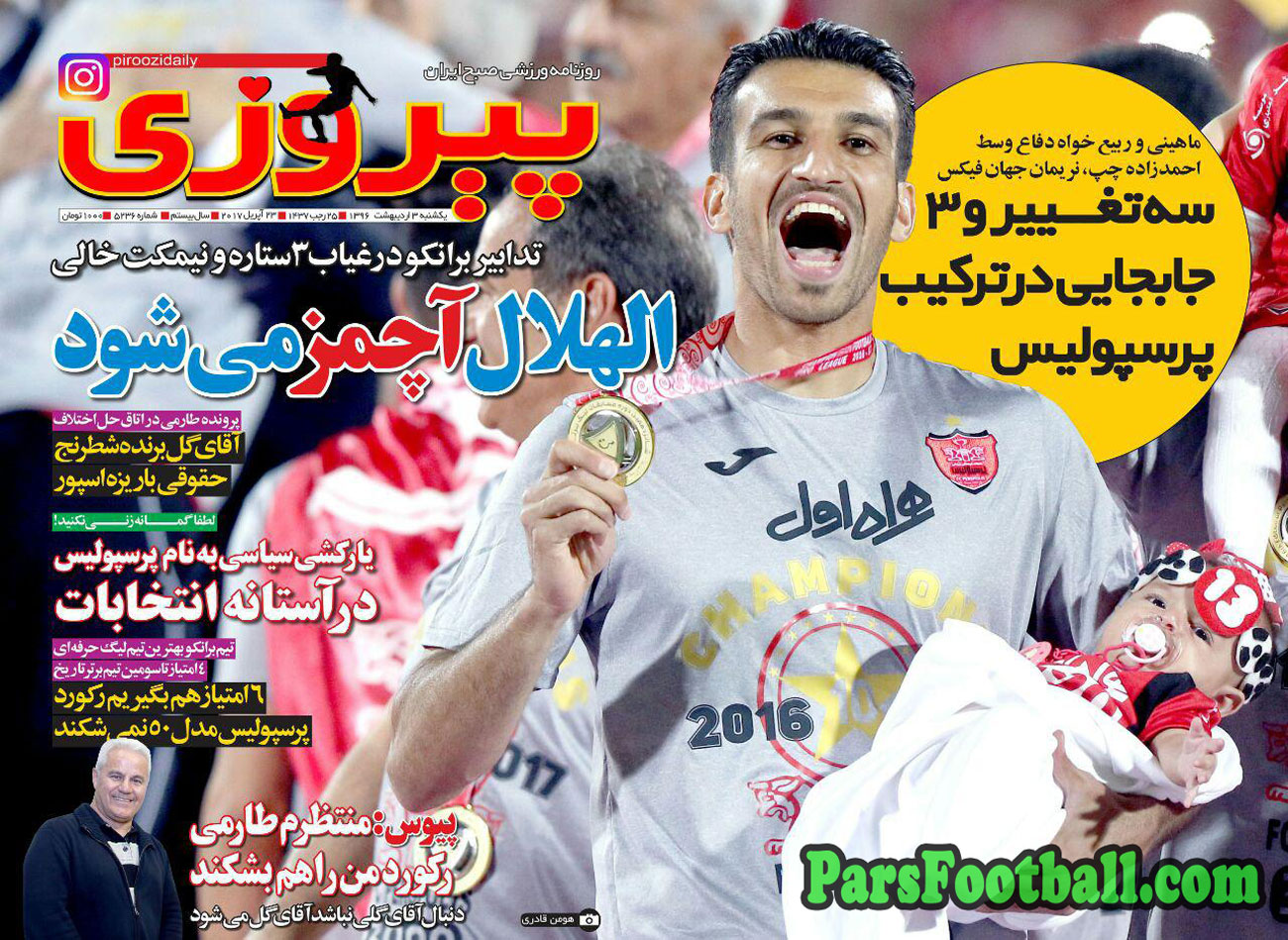 روزنامه پیروزی ، یکشنبه ۳ اردیبهشت ؛ الهلال آچمز می شود !