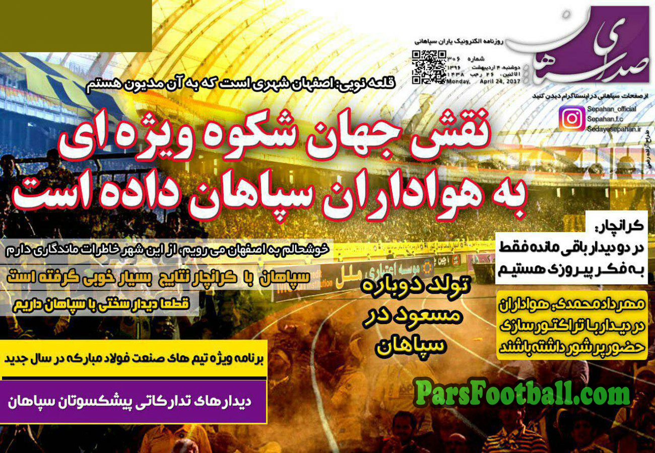 گیشه اخبار داخلی پارس فوتبال همه روزه به بررسی نشریات ورزشی می پردازد. به بررسی روزنامه صدای سپاهان می پردازیم.
