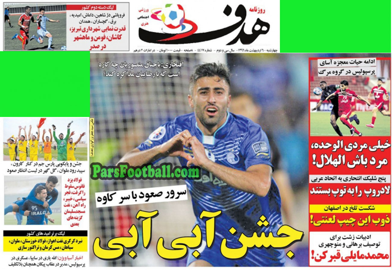 روزنامه هدف ، چهارشنبه ۶ اردیبهشت ؛ خیلی مردی الوحده !