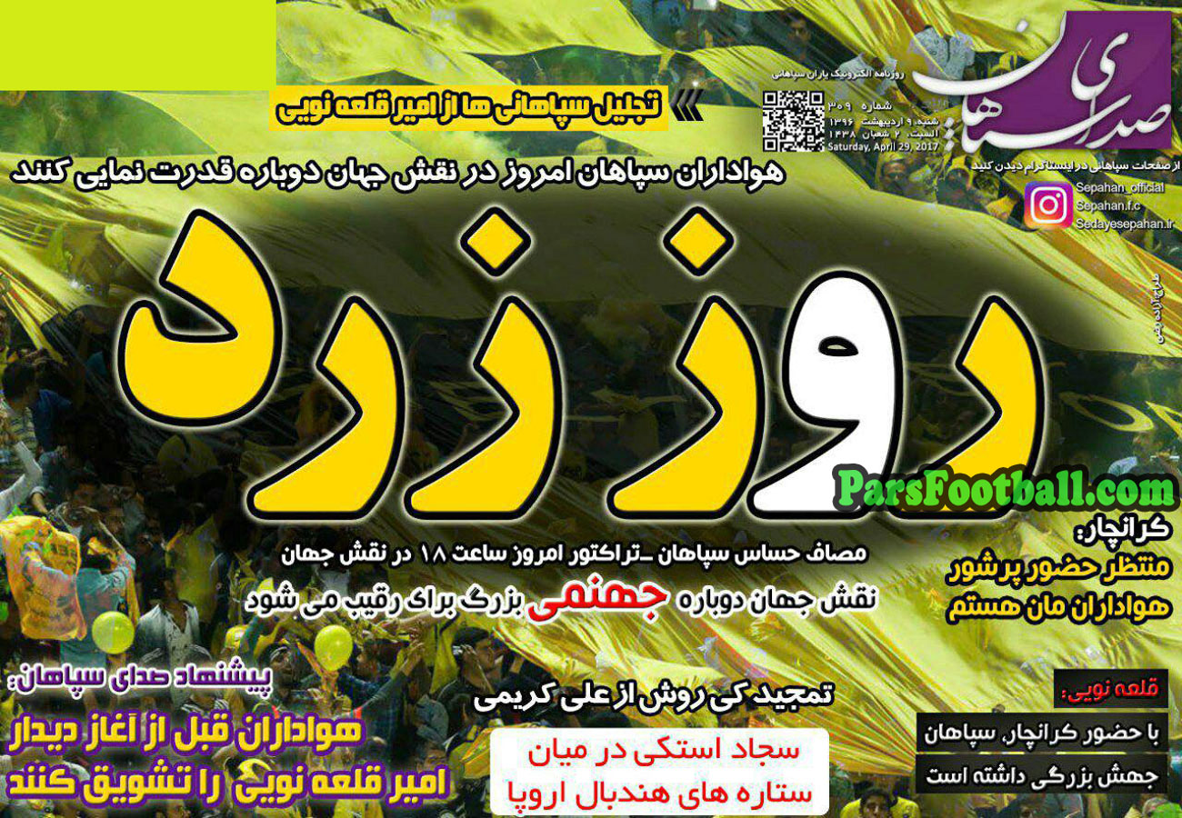 روزنامه صدای سپاهان ، شنبه ۹ اردیبهشت ؛ روز زرد !