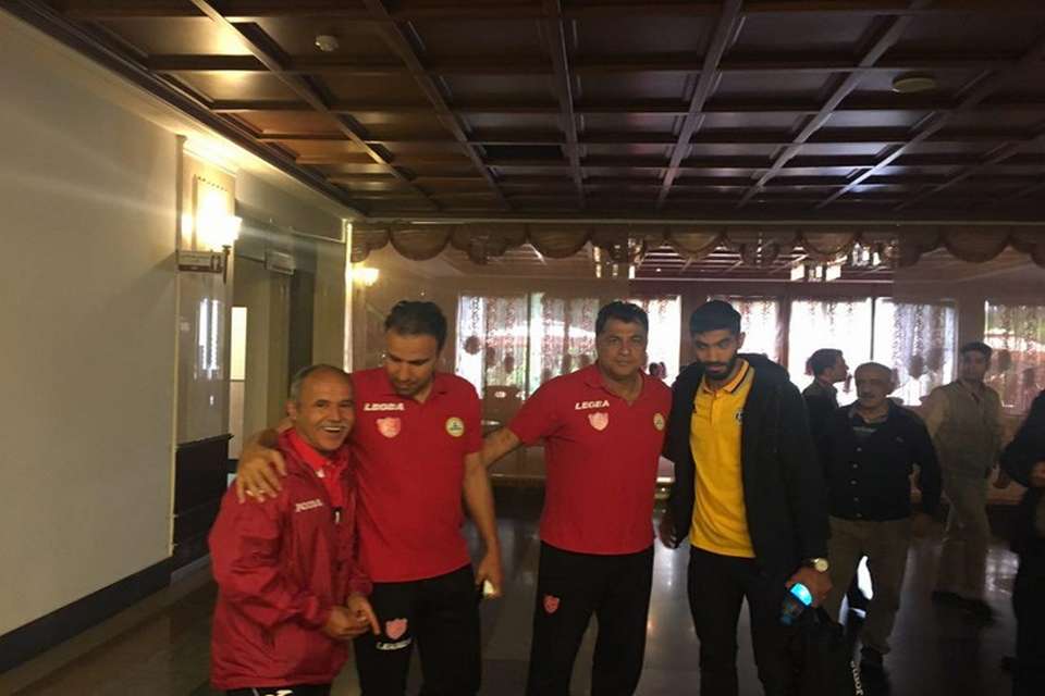 مدافع تیم فوتبال پرسپولیس با اعضای کادرفنی نفت تهران برخورد گرمی داشت.
