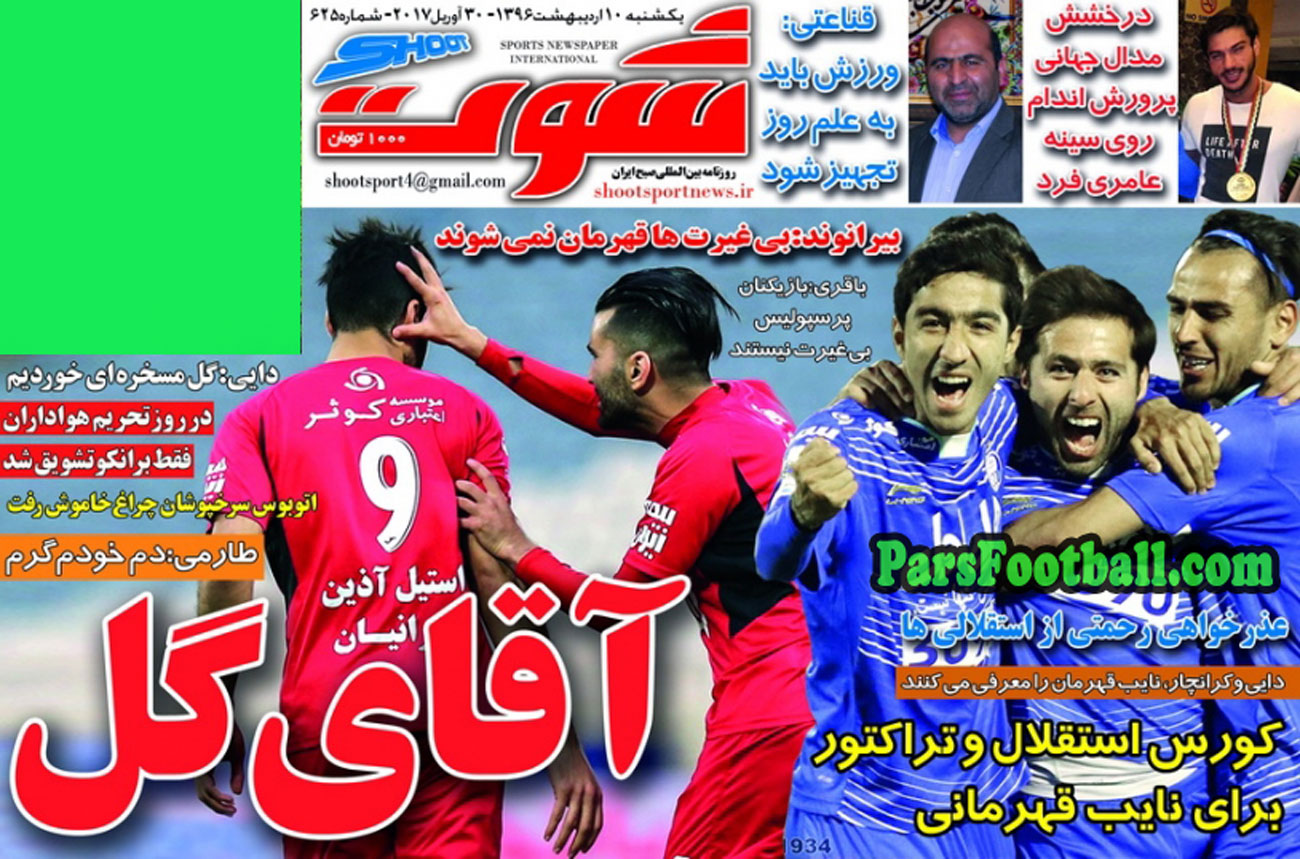 عناوین روزنامه شوت در روز یکشنبه ۱۰ اردیبهشت به شرح زیر است :