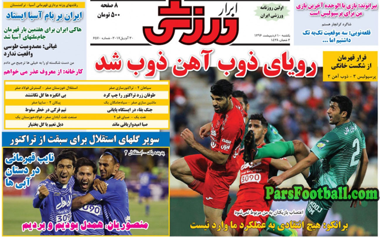 عناوین روزنامه ابرار ورزشی در روز یکشنبه ۱۰ اردیبهشت به شرح زیر است :