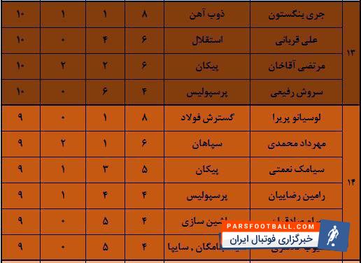 هشتم – محمد ایرانپوریان، تراکتورسازی، ۱۳ امتیاز