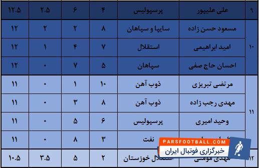 نهم – علی علیپور، پرسپولیس، ۱۲.۵ امتیاز