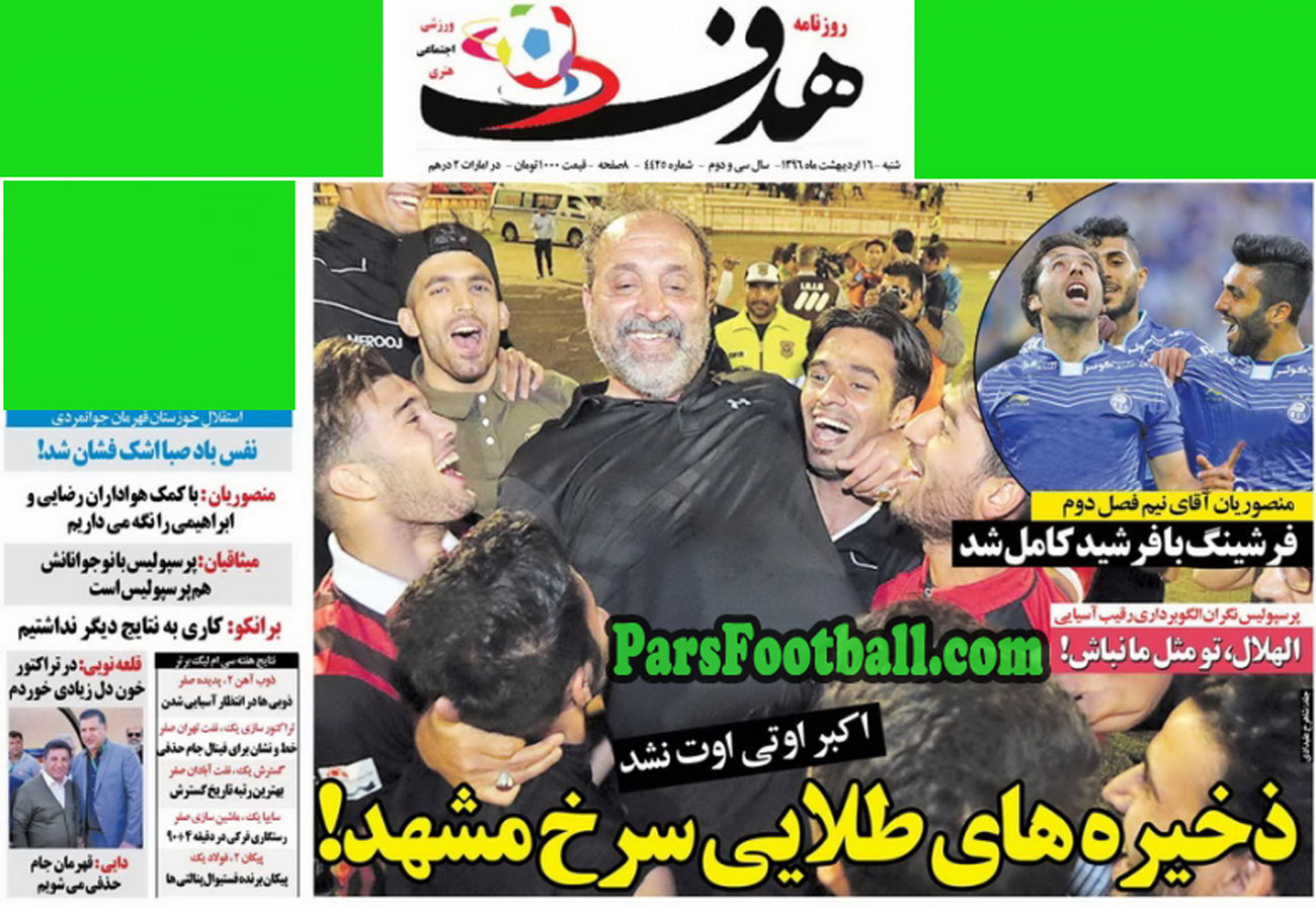 روزنامه هدف ، شنبه ۱۶ اردیبهشت ؛ فرشینگ با فرشید کامل شد