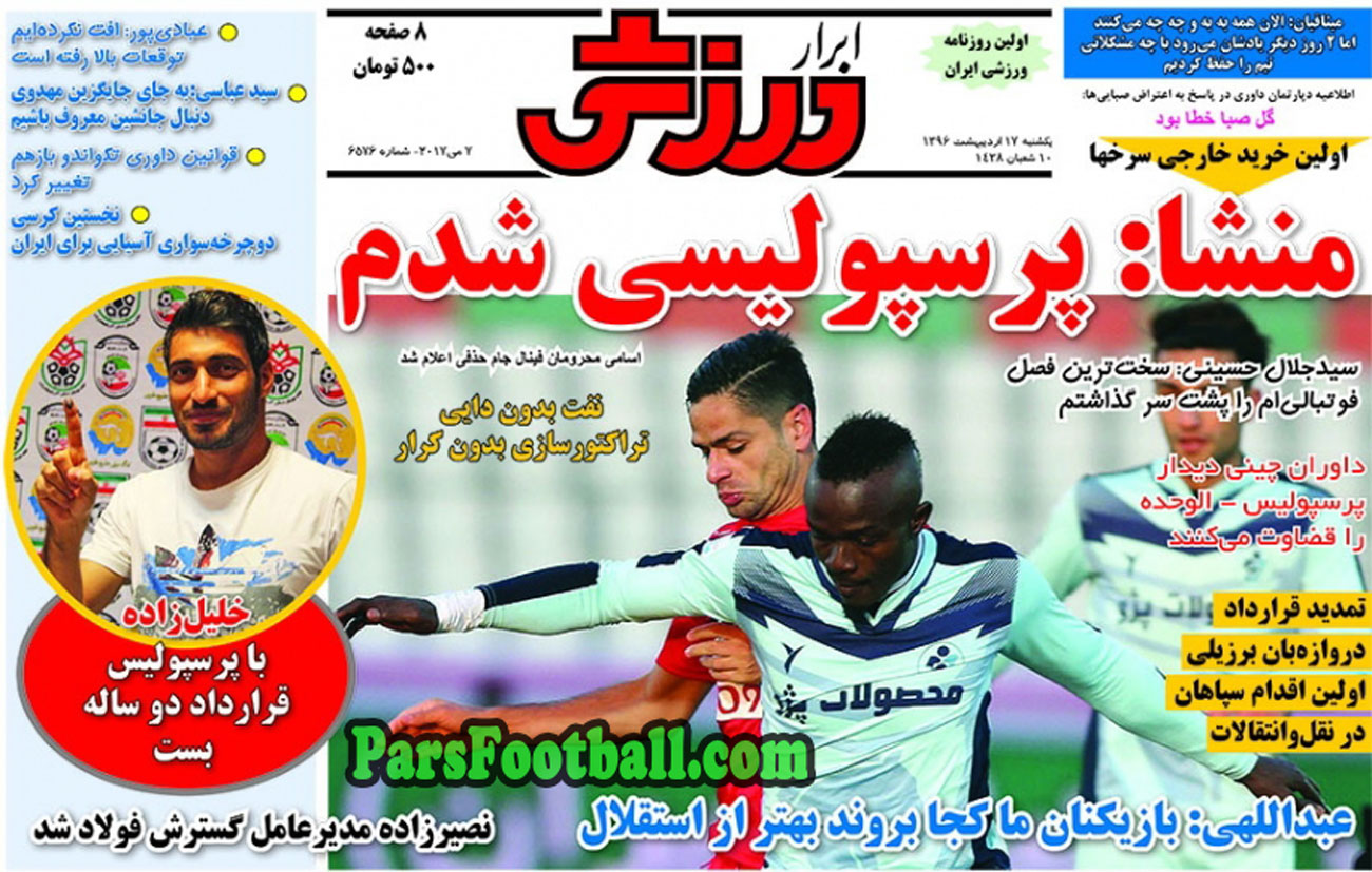 روزنامه ابرار ورزشی ، یکشنبه ۱۷ اردیبهشت ؛ منشا : پرسپولیسی شدم