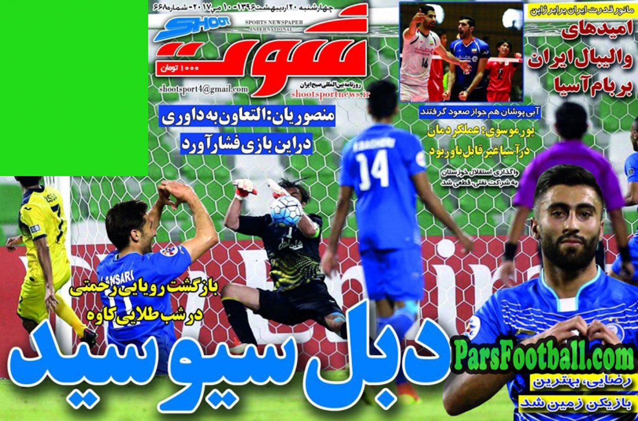 عناوین روزنامه شوت در روز چهارشنبه ۲۰ اردیبهشت به شرح زیر است :