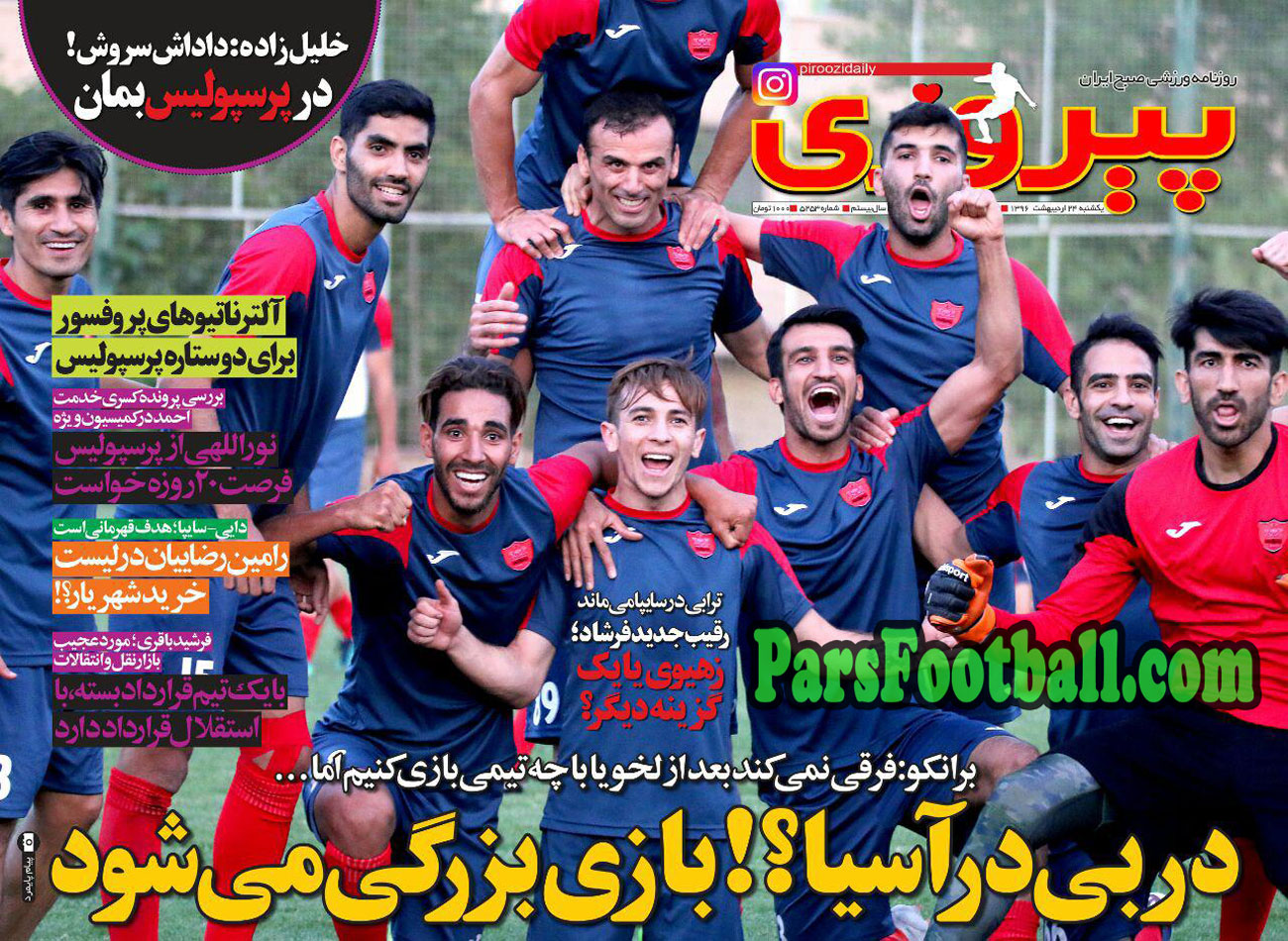 روزنامه پیروزی ، یکشنبه ۲۴ اردیبهشت ؛ داداش سروش در پرسپولیس بمان !
