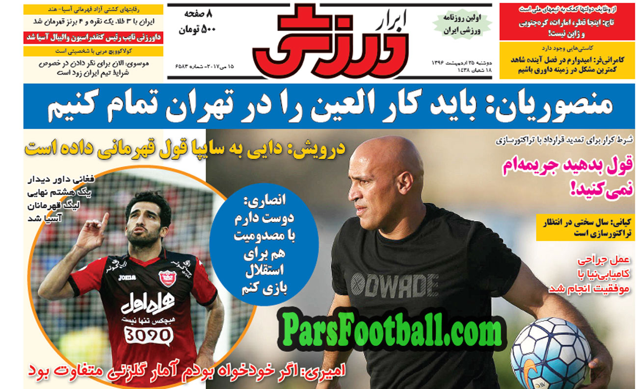 عناوین روزنامه ابرار ورزشی در روز دوشنبه ۲۵ اردیبهشت به شرح زیر است :