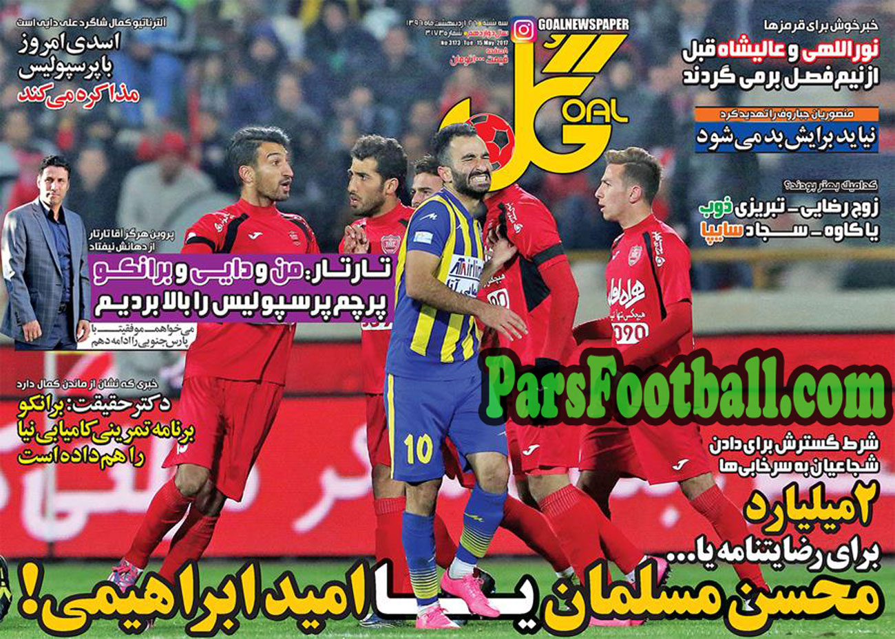 روزنامه گل ، سهشنبه ۲۶ اردیبهشت ؛ برانکو برنامه تمرینی کمال را هم داده است