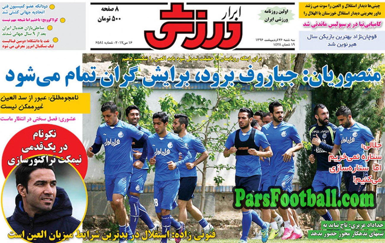 عناوین روزنامه ابرار ورزشی در روز سه شنبه ۲۶ اردیبهشت به شرح زیر است :